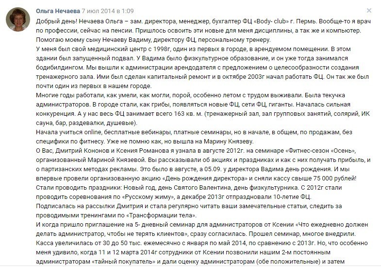 Рекордные продажи и прибыль за все время работы клуба (в июне!) (Ольга нечаева, Body club, г. Пермь)