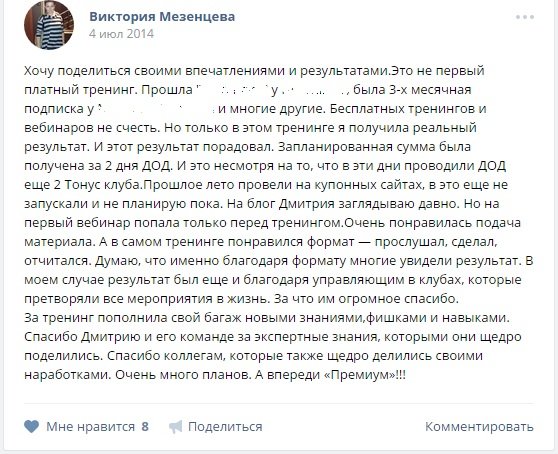 Всегда мечтали выйти за пределы дохода в 250 000 р. В "Тройном Ударе - 3", в июне (!) доход превысил 380 000 р! Затраты на тренинг вы отобьете уже в ходе тренинга: уж если я смогла - получится и у вас! До встречи на "Тройном Ударе - 8"!